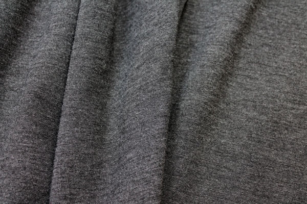 90% wool 10% recycled material. Listed as two-way stretch due to the properties of a knit fabric, there's no elastane or stretch fibre in the yarn.