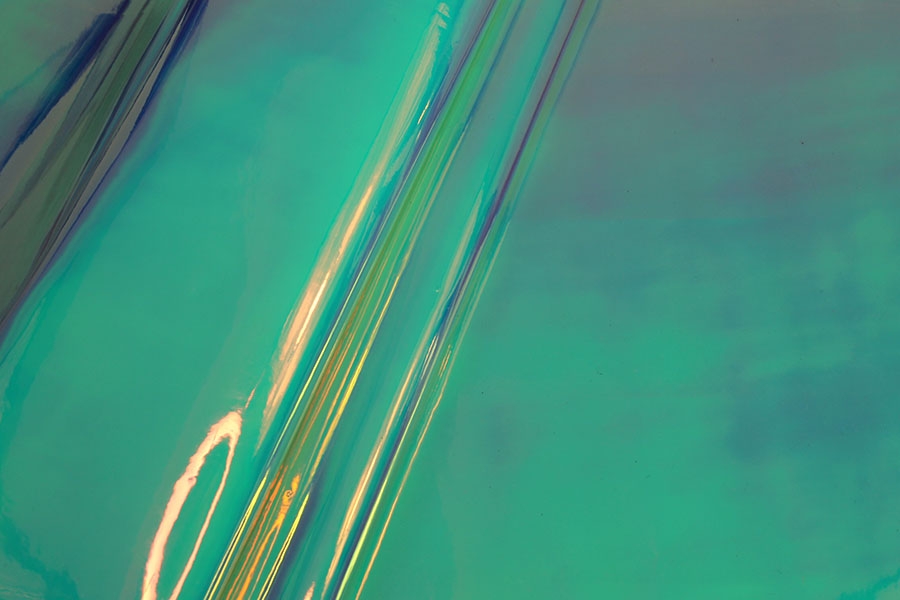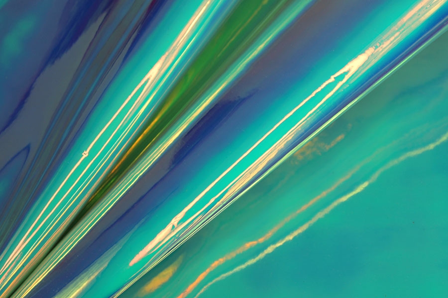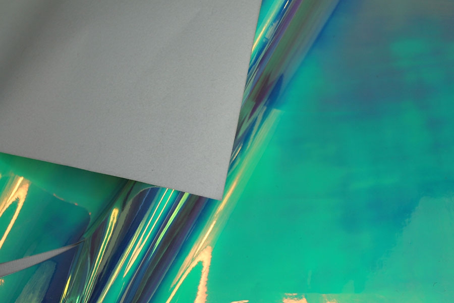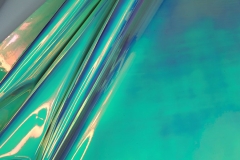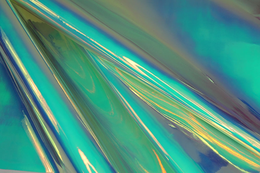 This fabulous iridescent mirror PVC changes colour from mint green to blue.