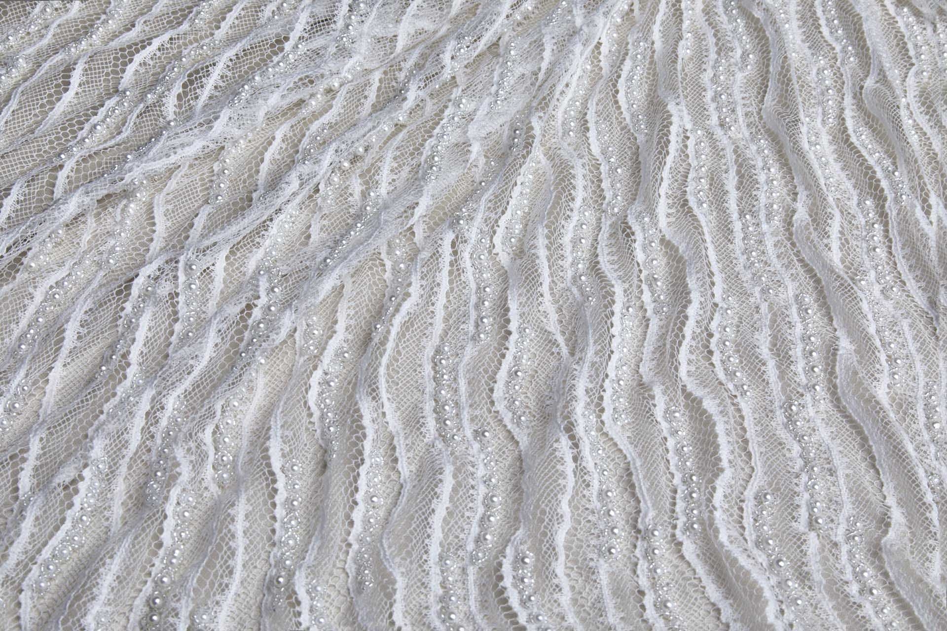 An absolutely stunning hand beaded Italian lace in ivory, beaded with pearls and glass beads. Extra wide at 135cm.