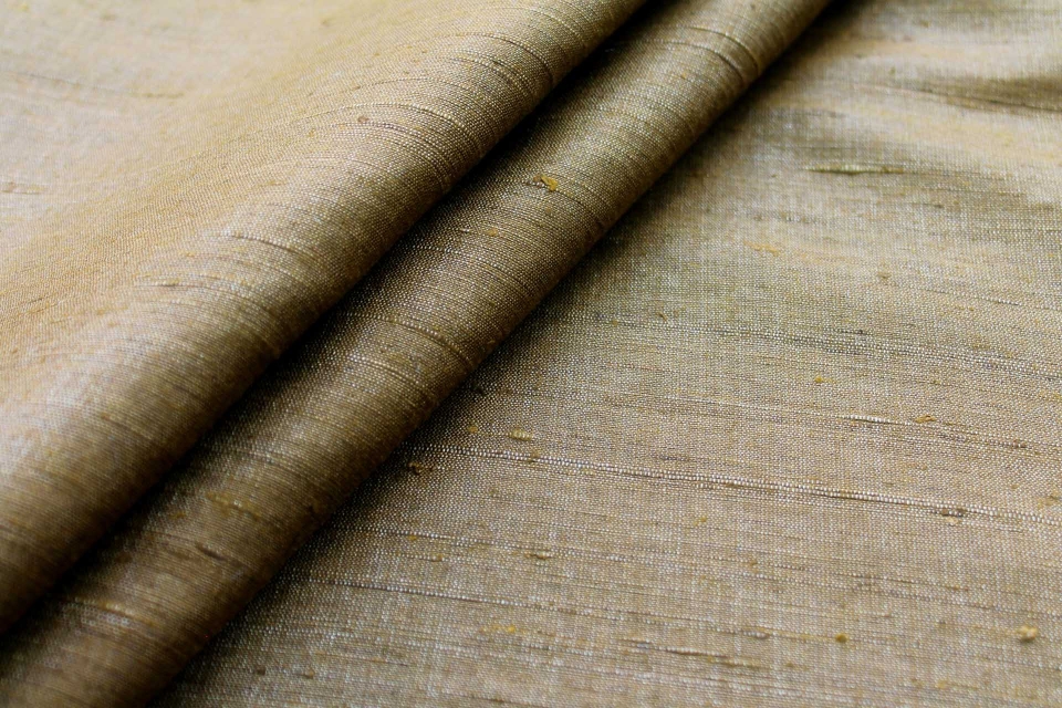 This is a beautifully textured silk tassar matka fabric with that "raw" appearance, woven with ivory thread with uneven finish, giving the classic characteristic of slub silk. It's firm but supple, with a slight dull sheen.