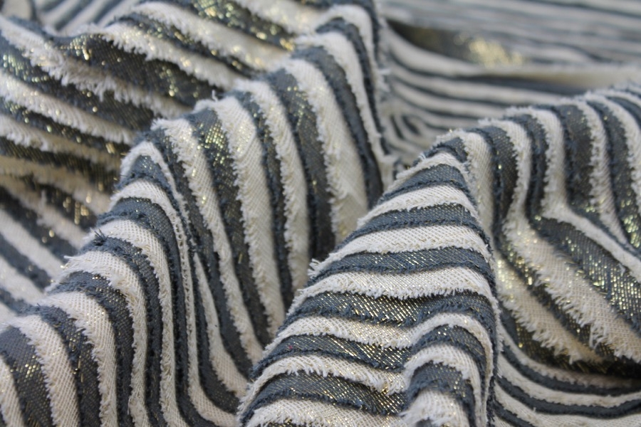 Cotton and Lurex Stripe Applique - Dark Grey, Cream and Gold