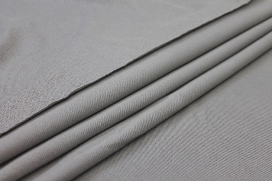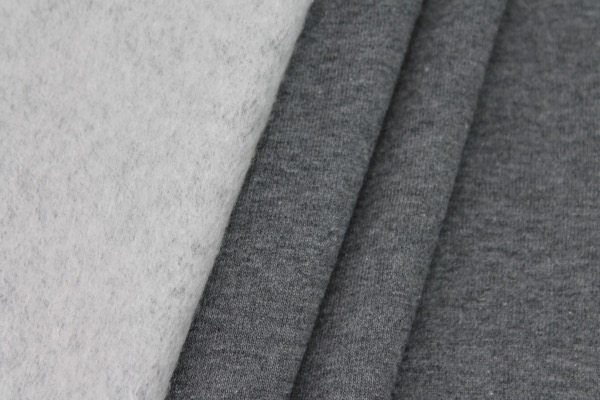 This is a double sided sweatshirt jersey in solid dyed grey with a loop-backed inside. 100% organic cotton, 300g per square metre.