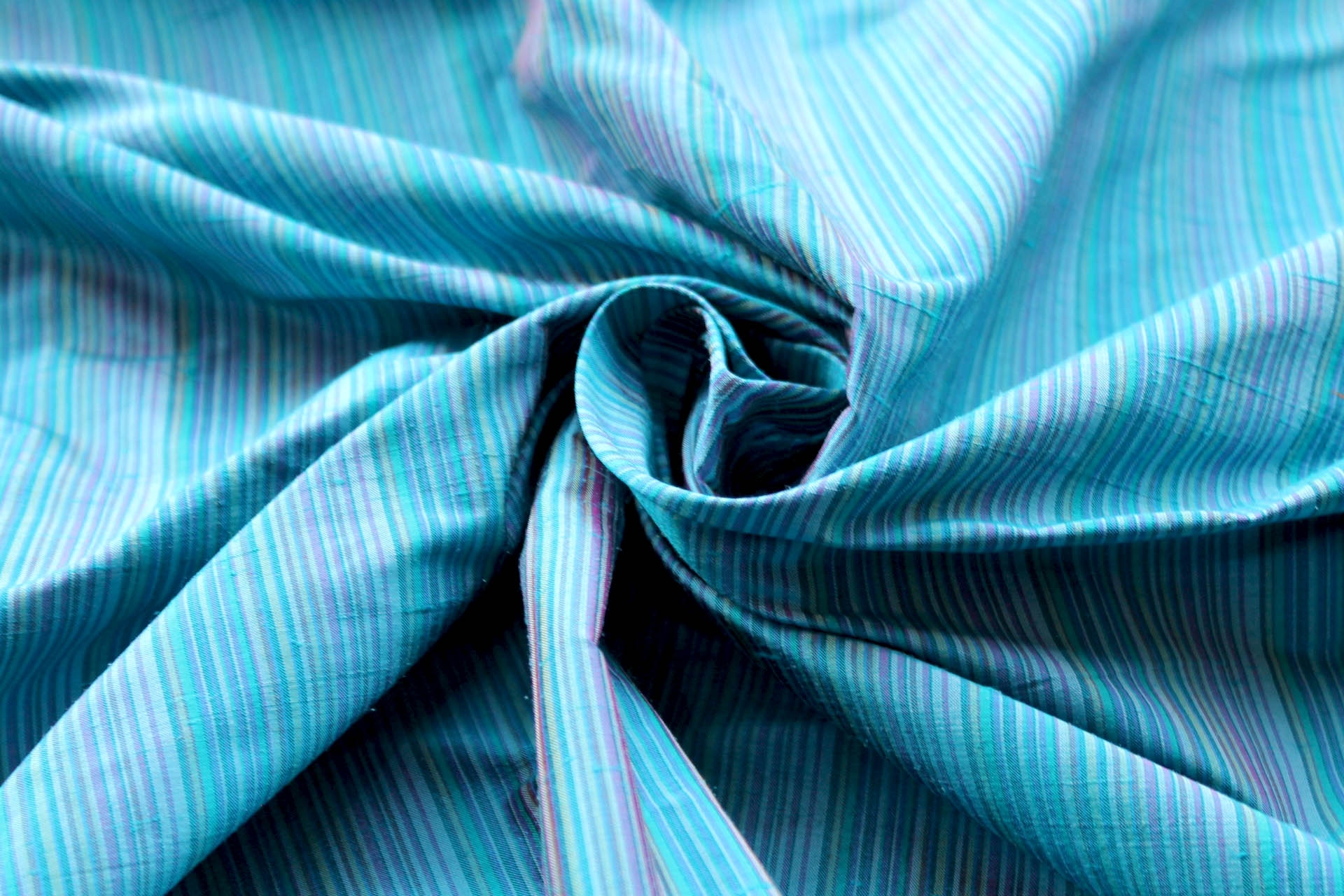 LAST PIECE - Multi Striped Silk Dupion - Turquoise