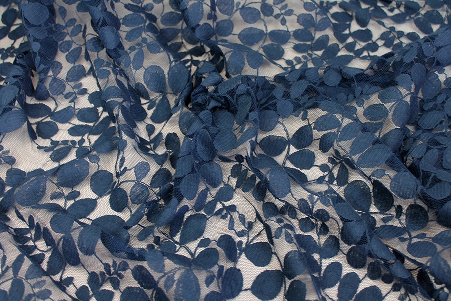 LAST PIECE - Leaf Pattern Lace - French Navy