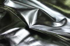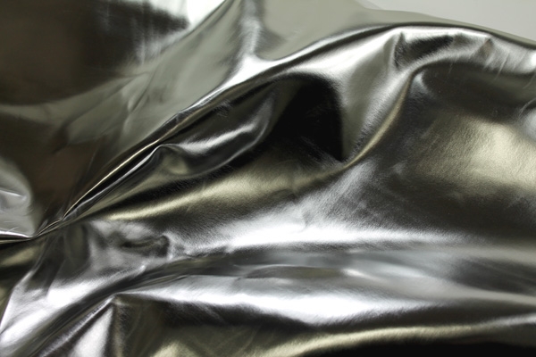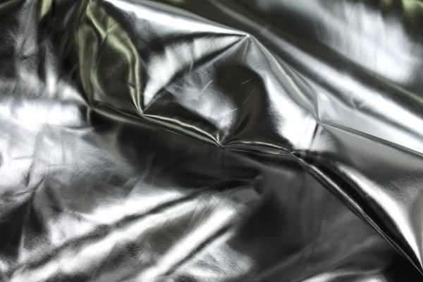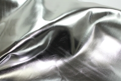 This is a heavier quality leatherette with a high gloss, almost mirror like metallic finish, in silver.