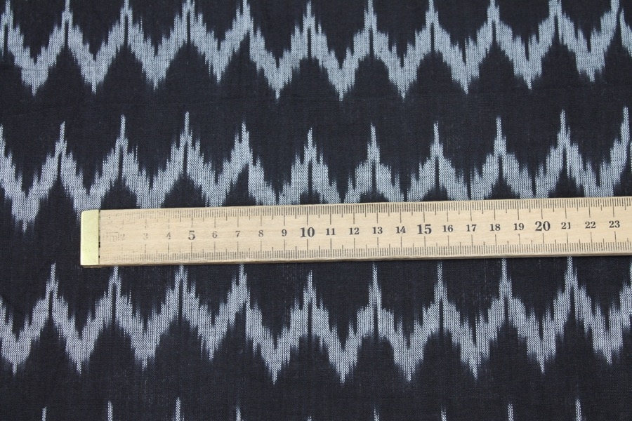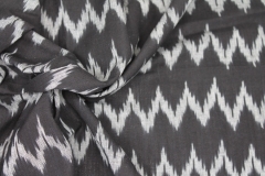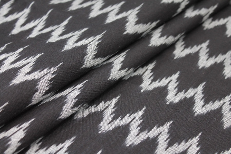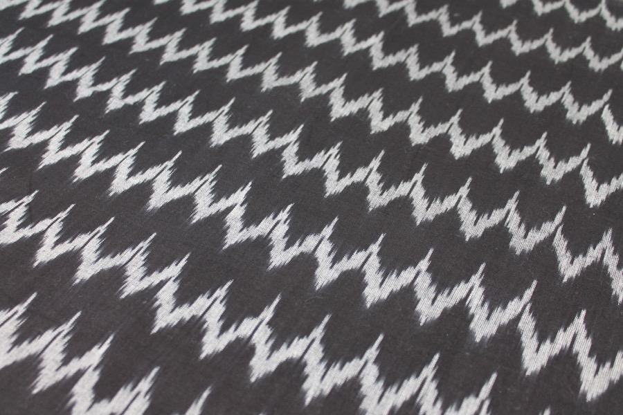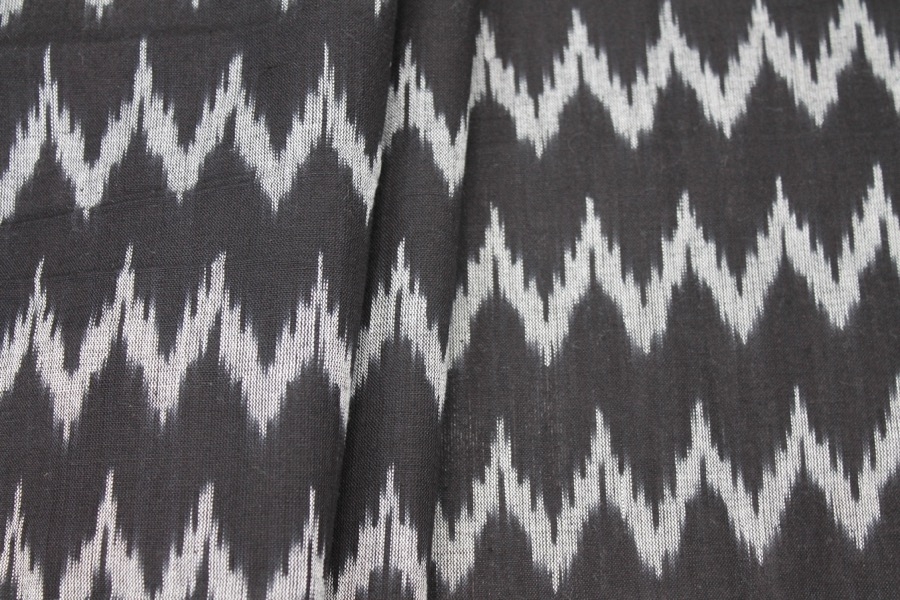 A light weight cotton Ikat in black with a white pattern. 100% cotton, a soft and light quality cotton.