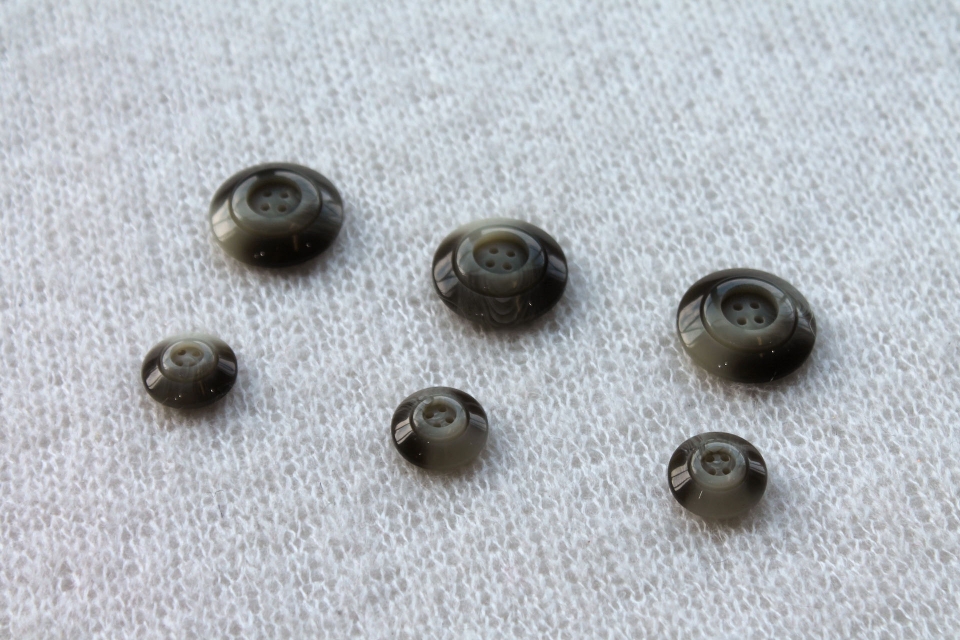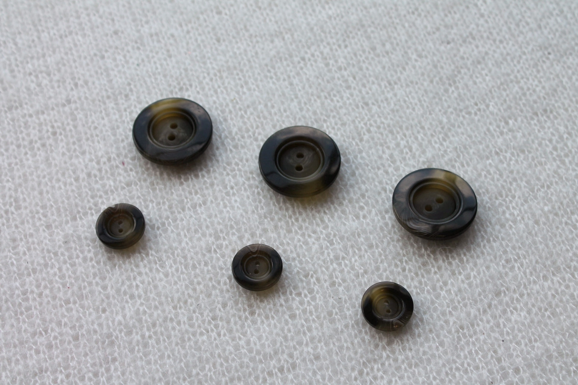 This is a vintage nylon button in olive and black, with two holes, it measures approx 3cm across.