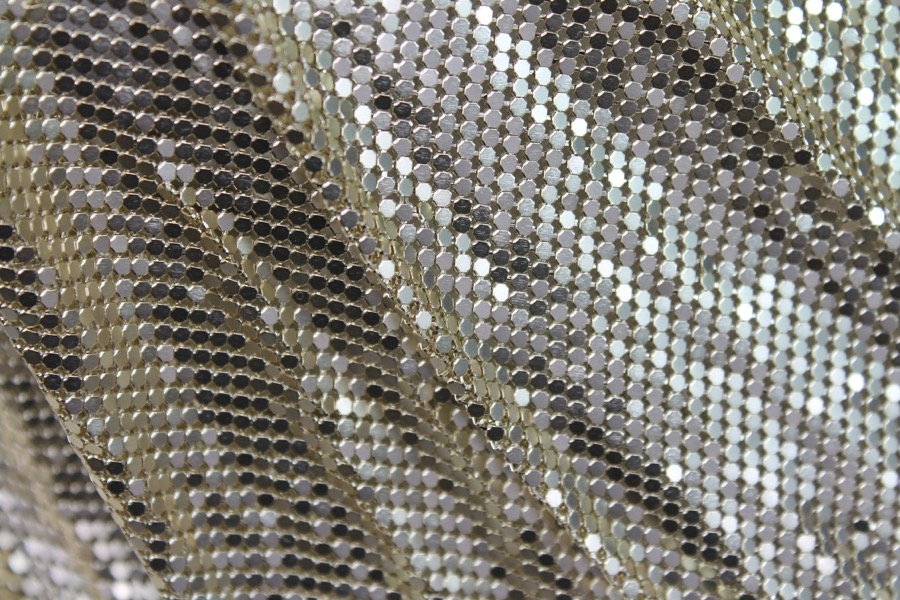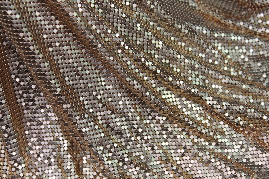 This is a fantastic piece of metal chainmaille, also referred to as metal mesh, made from tiny 3mm studs linked onto metal rings. This one is in copper, also available in other colours.
