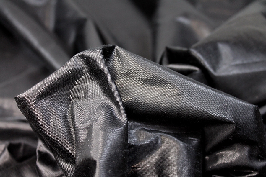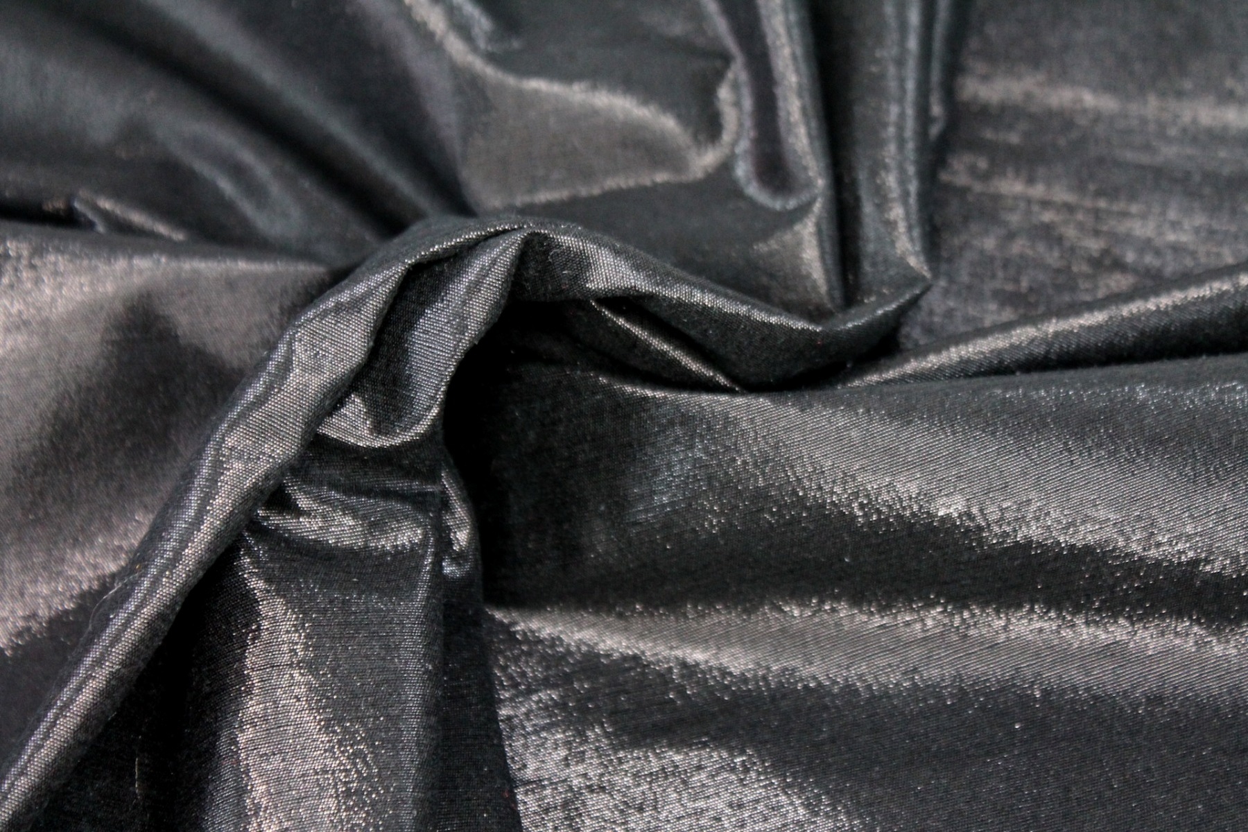 This silk noil has been woven with a lurex thread to give it a metallic sheen. This one is made with black silk and black lurex.