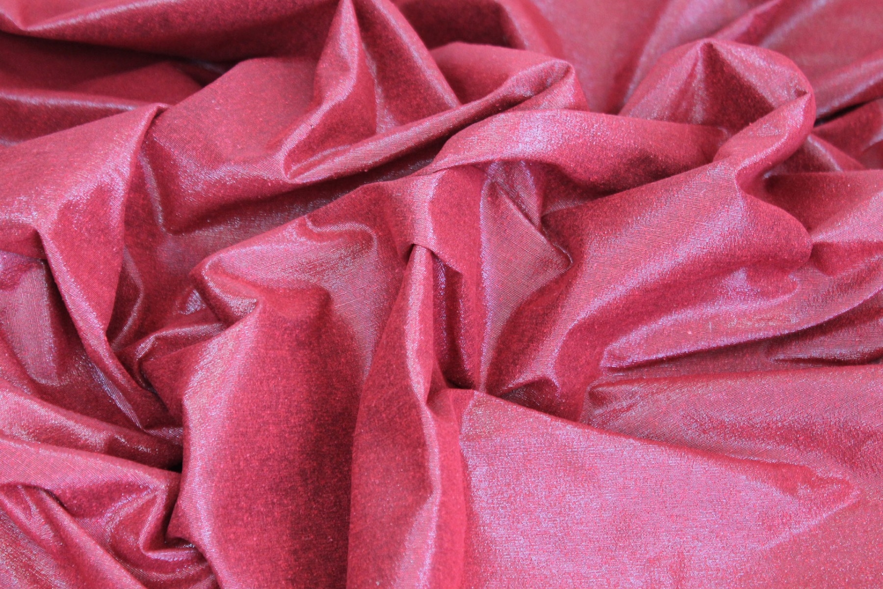This silk noil has been woven with a lurex thread to give it a metallic sheen. This one is made with red silk and black lurex.