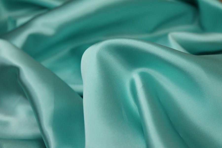Lightweight silk satin in mint green, a fresh summer colour. 100% silk, also called silk charmeuse or mulberry silk.