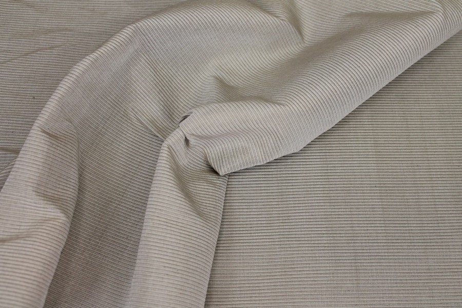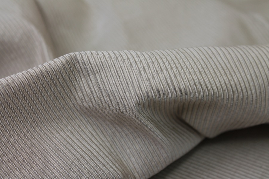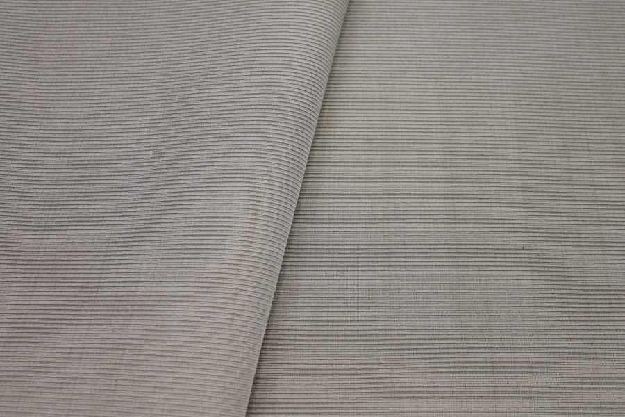 This silk cotton mix weave resembles an ottoman with a ribbed texture, in natural linen colour, wide width at 140cm.