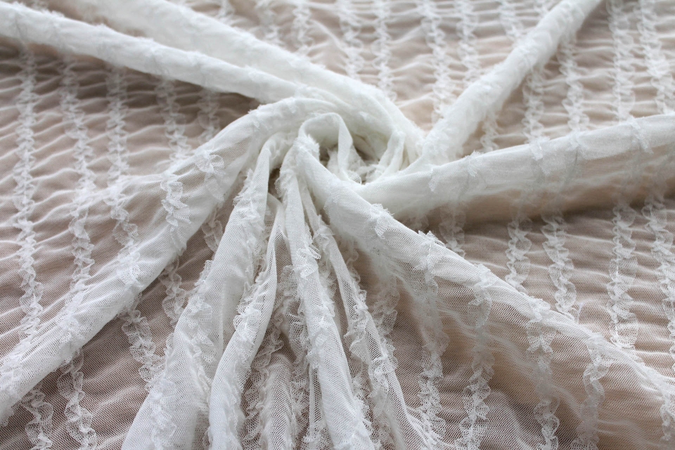 Dainty Ivory Roses Embroidered on Ivory Tulle