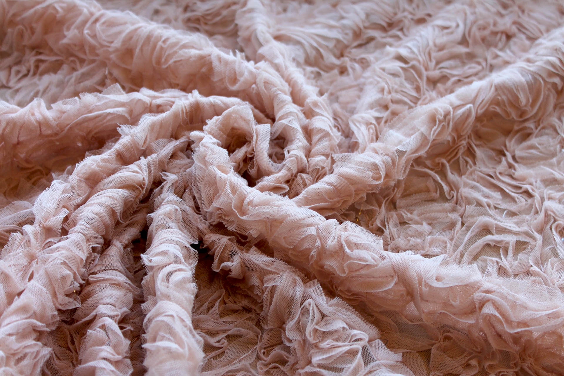 Nude tulle with applique of flowers and fern-like leaves. Made from our soft nylon tulle.