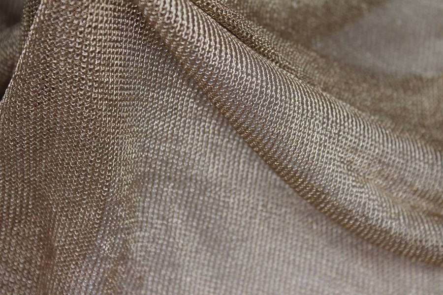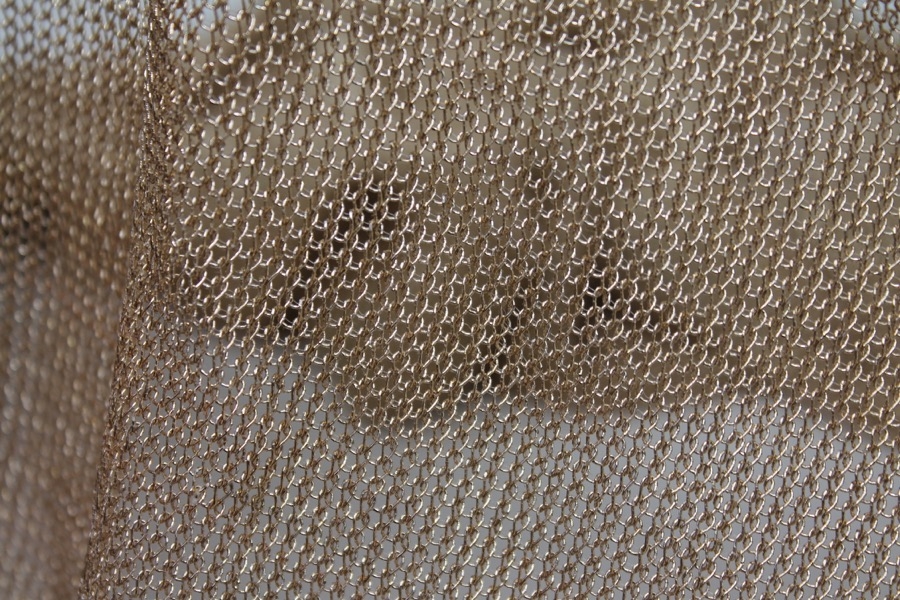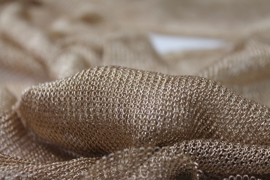 This is a soft fine knit in a gold metallic thread. Great drape and bounce.