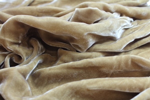 A luxurious, soft, drapey silk velvet composed of a pale gold silk chiffon base and a matching golden viscose pile, this colour has been named Oatmeal by the manufacturers.