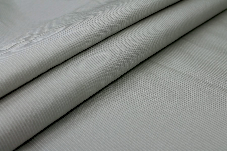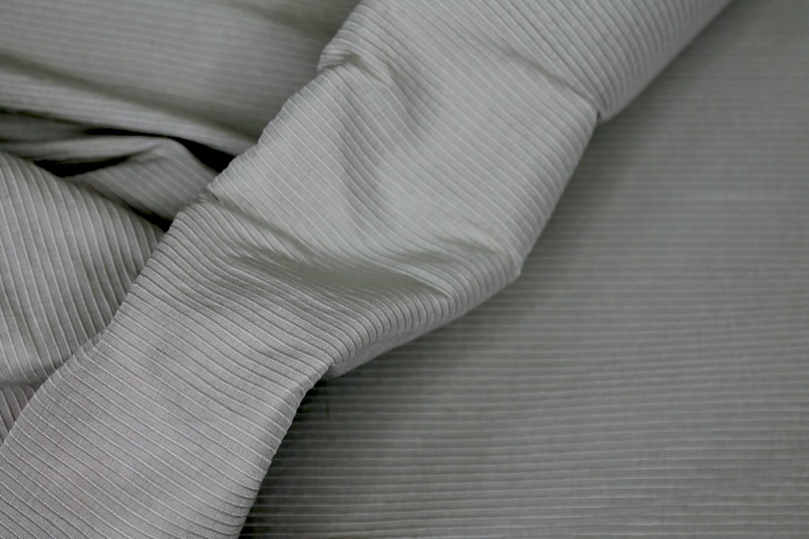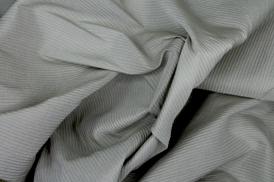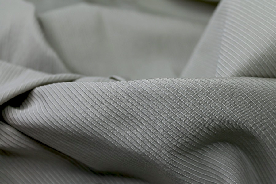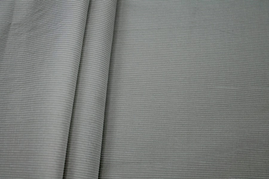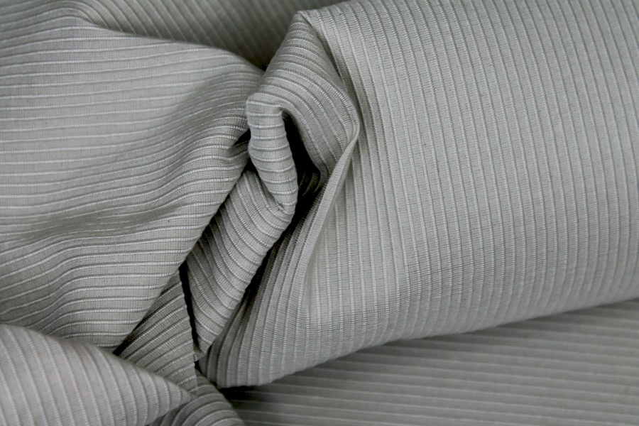 This silk cotton mix weave resembles an ottoman with a ribbed texture, in pale grey, wide width at 140cm.