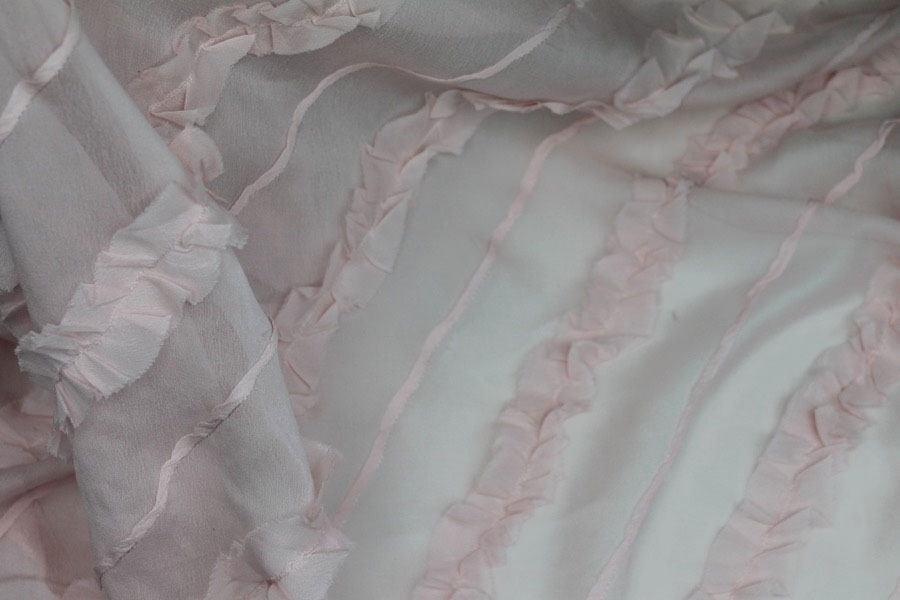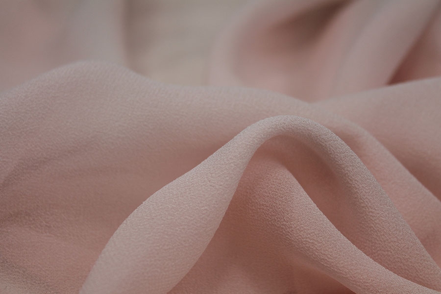 A high quality, fine silk georgette in pale pink. 100% silk. 135cm wide.