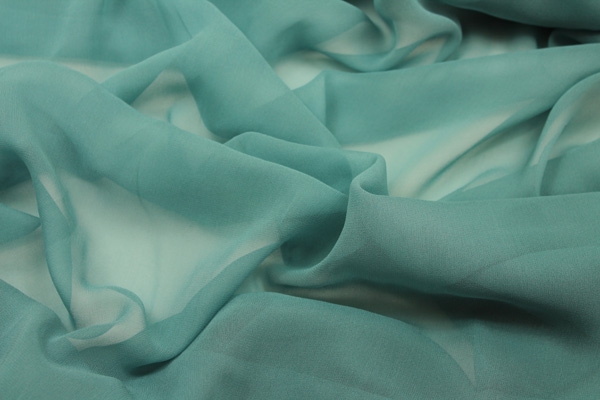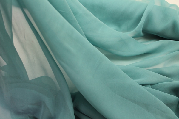 A high quality, fine silk georgette in pale teal. 100% silk. 110cm wide.