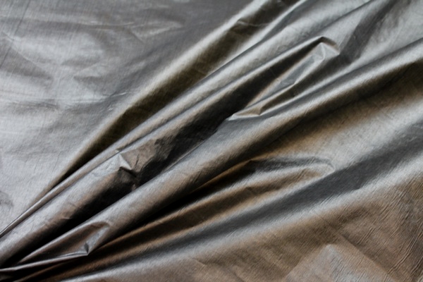 Silk tussah in black, a beautiful thin, almost sheer fabric with a coating which makes it almost paper like. Hence the name paper silk, a cloth often used in costumes. 100% silk.