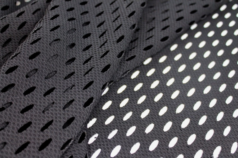 This is a European made jersey knit, with an airtex like imprint with perforations, in black.