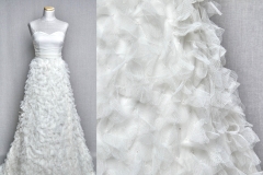 Ivory nylon tulle, cut into petals or teardrops, hand sewn onto a silk chiffon, with a matching sequin at the attaching point for added shimmer.