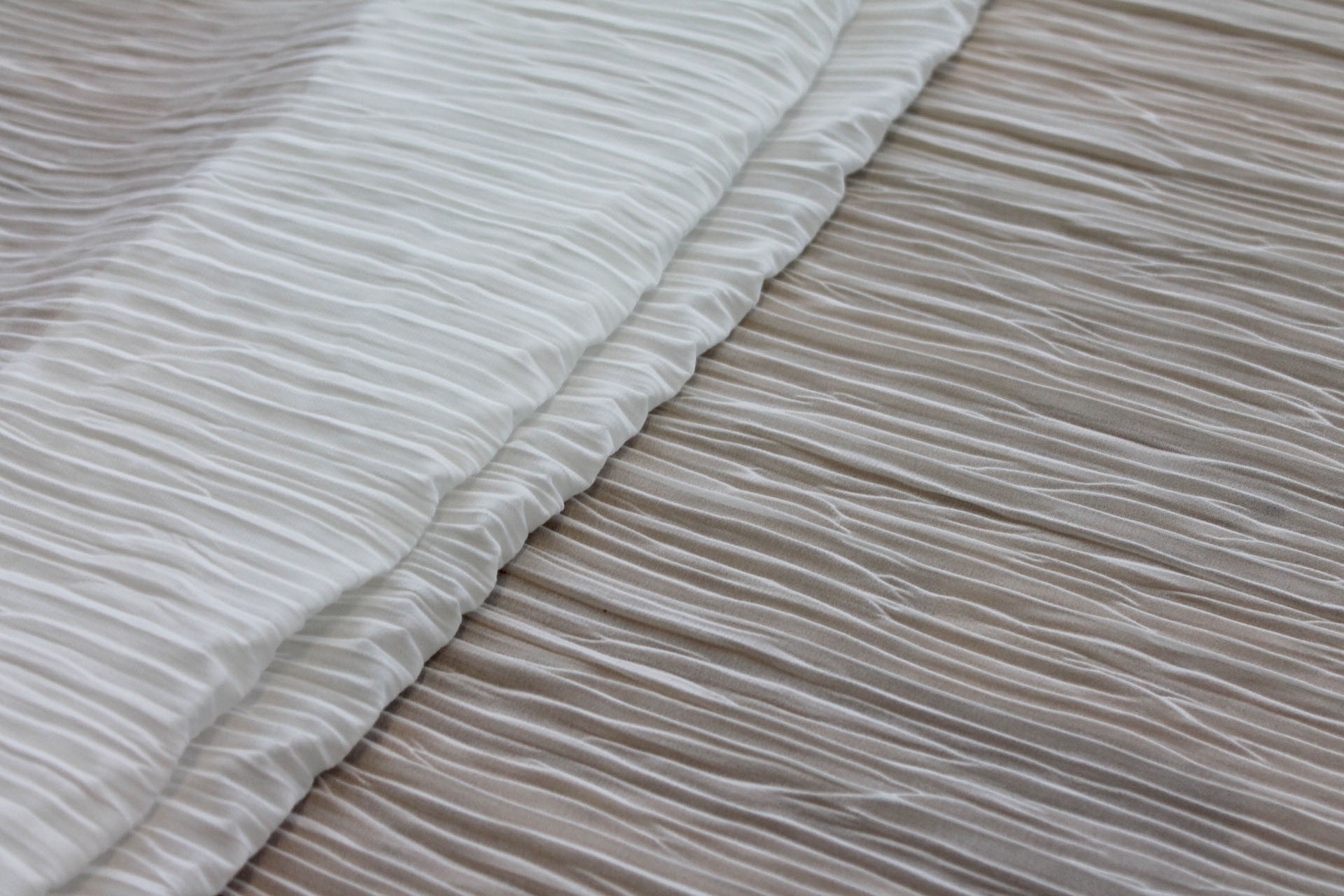 100% polyester chiffon, which has been pleated into a slightly irregular wavy pleat, in ivory.