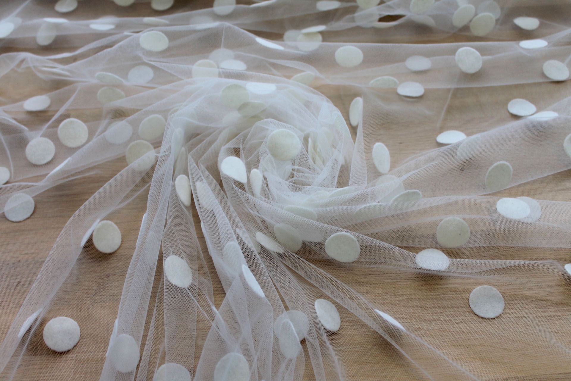 Polka Dot / Flock Spot Tulle - Ivory - Large