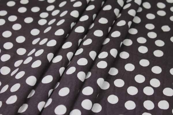 A medium weight stretch cotton in brown with a cream spot or polkadot print. The spots are approximately 1cm wide. 96% cotton and 5% elastane, 140 cm wide, European made.