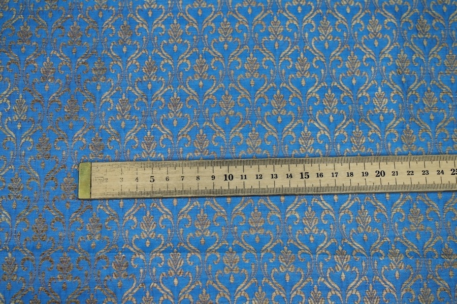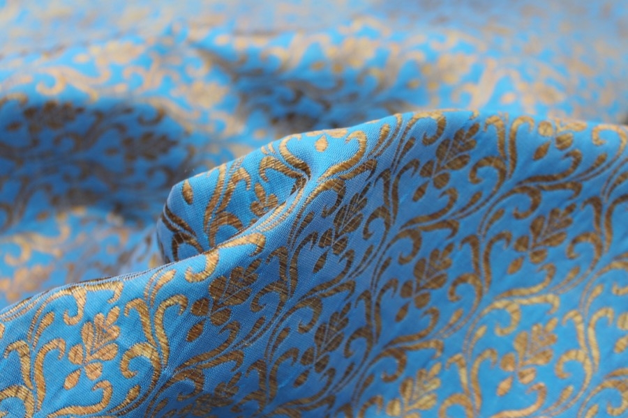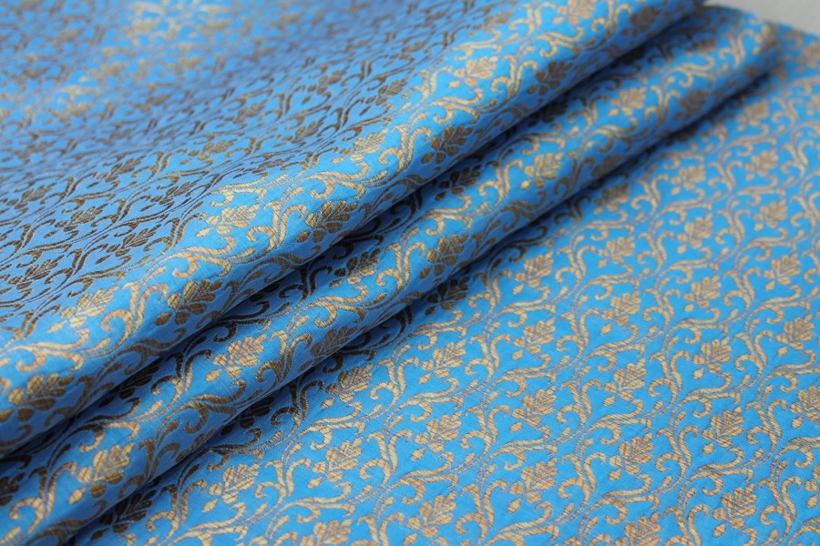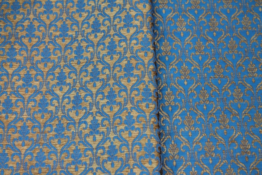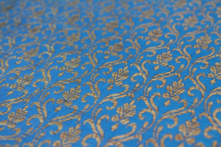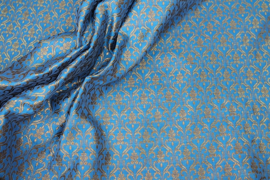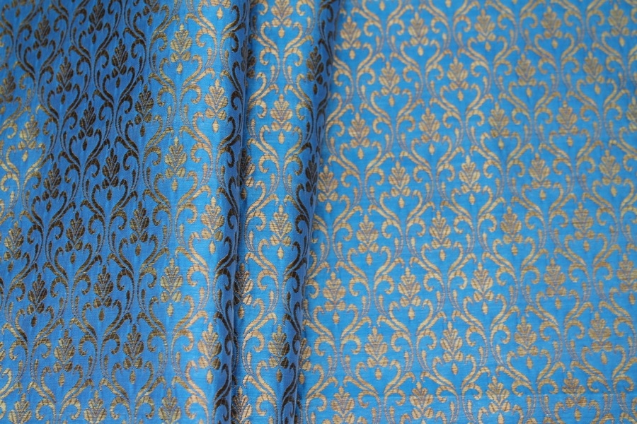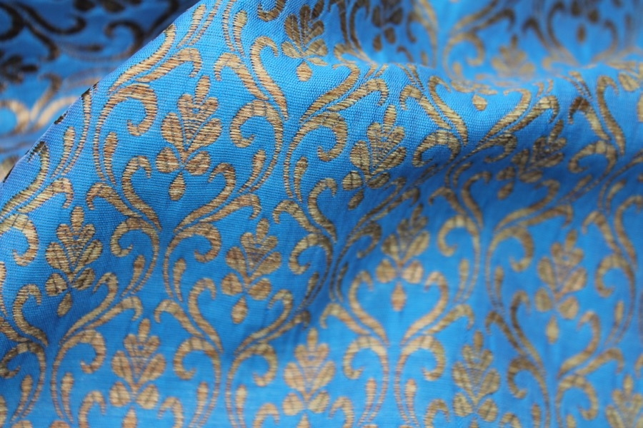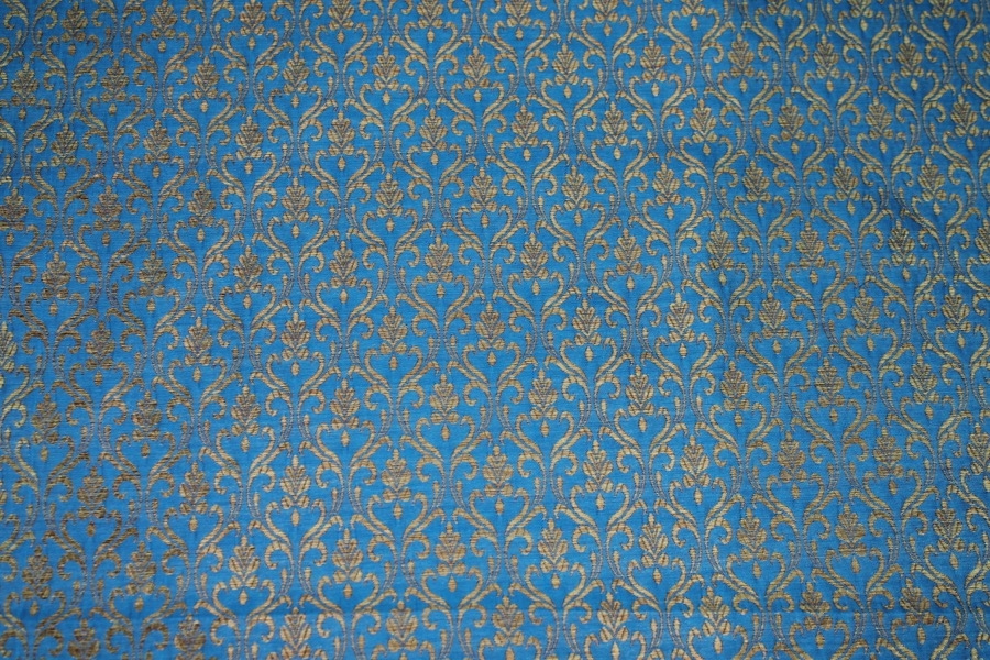 Bright Blue and Gold Ornamental Brocade