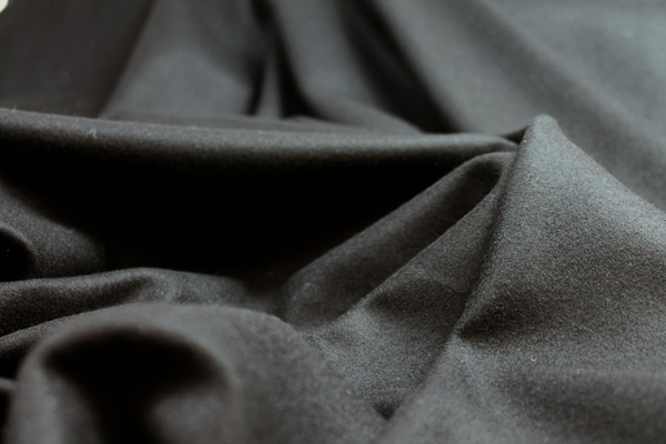 Luxurious and soft, this is 100% cashmere, with a slight nap to the face side. Black.