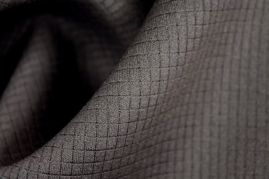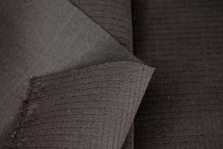 It has a checkered pattern on one side. This is not neoprene, scuba jersey is used for lingerie and fashion.
