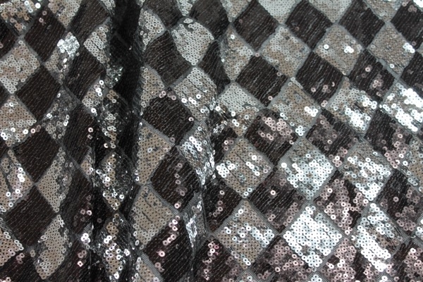 REMNANT - Harlequin Sequin On Tulle - Silver / Brown - 0.4m Piece