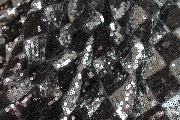 This one has silver and brown sequins on a black tulle. 140cm wide.