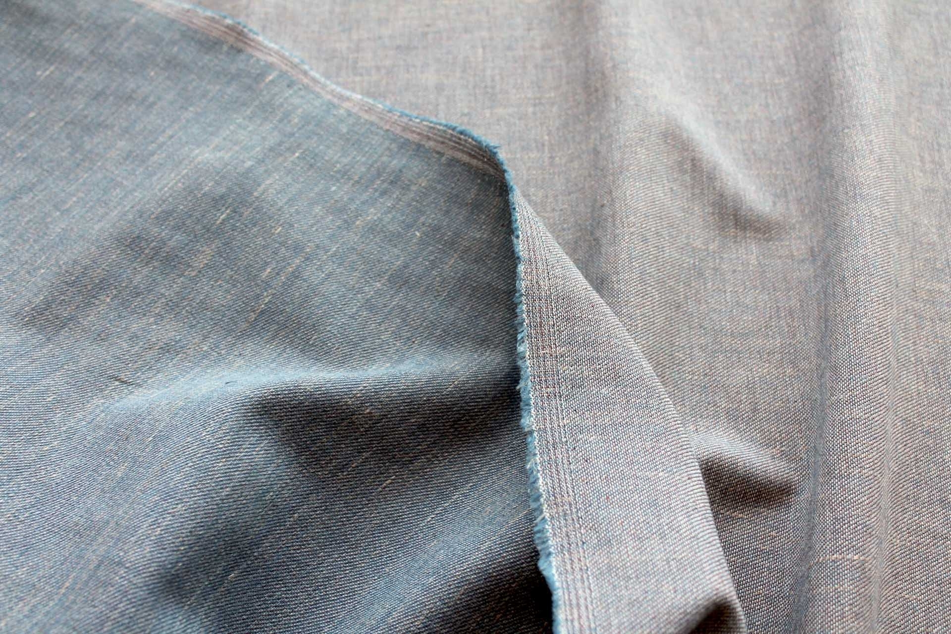 This is a denim like twill weave in linen, in a soft muted blue with a light brown reverse, soft and with good drape, this one is perfect for lighter garments such as shirts and blouses, jeans shorts and overalls or even light wrap dresses.