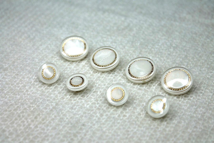 Round "Pearl" Resin and Gold Inlay Shank Button - Tan - 1.8cm