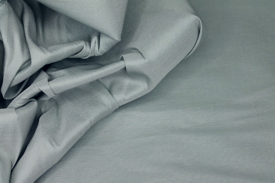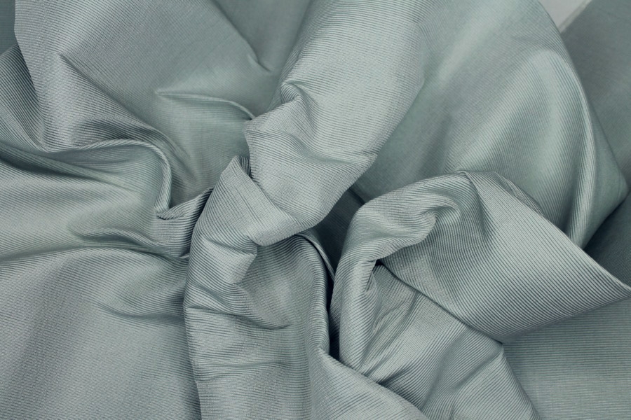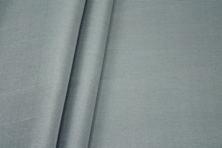 This silk cotton mix weave resembles an ottoman with a ribbed texture, in sea blue, wide width at 140cm.