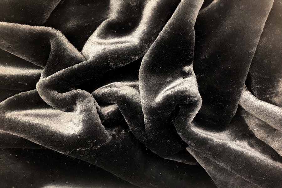 A luxurious soft short pile faux fur in black with a knitted back that adds drape and stretch. Approx 1cm deep pile.