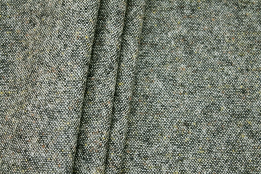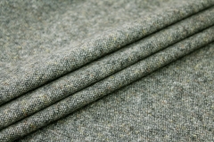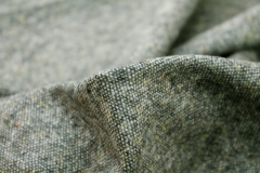 A high quality silk and wool mix tweed, woven with threads of green and grey, with flecks of navy in the weave.