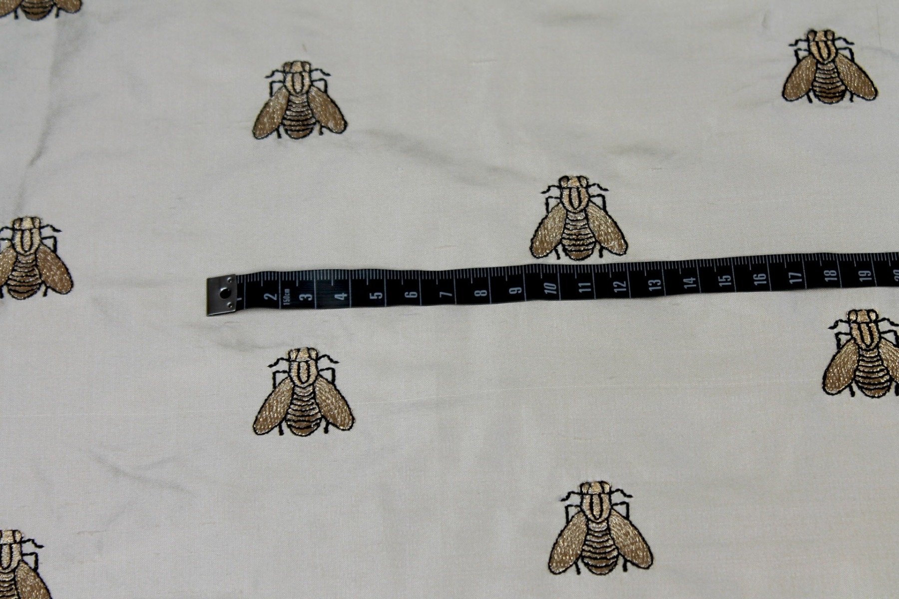 Silk Dupion Embroidered with Bees - Cream / Gold
