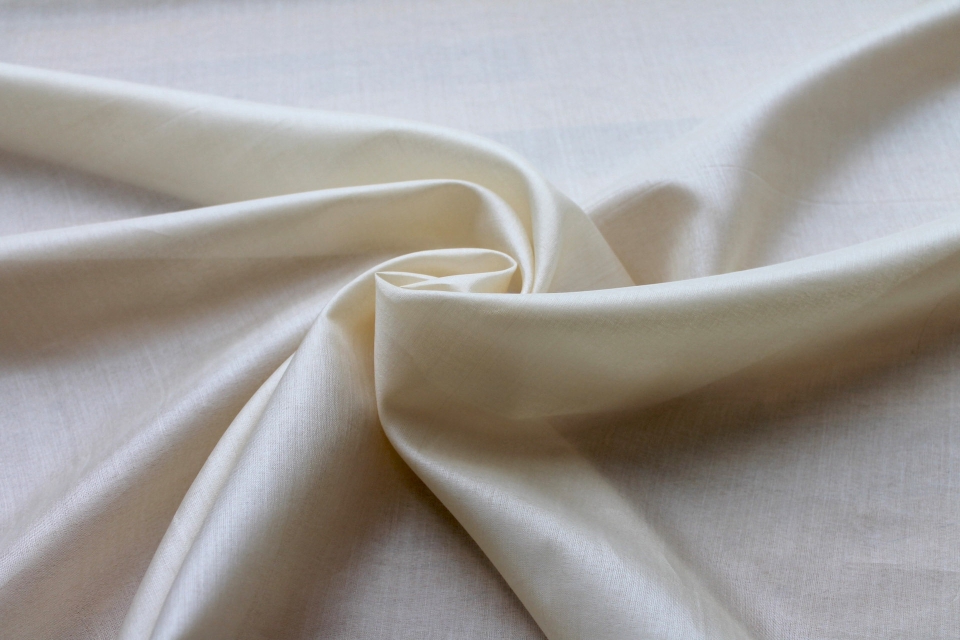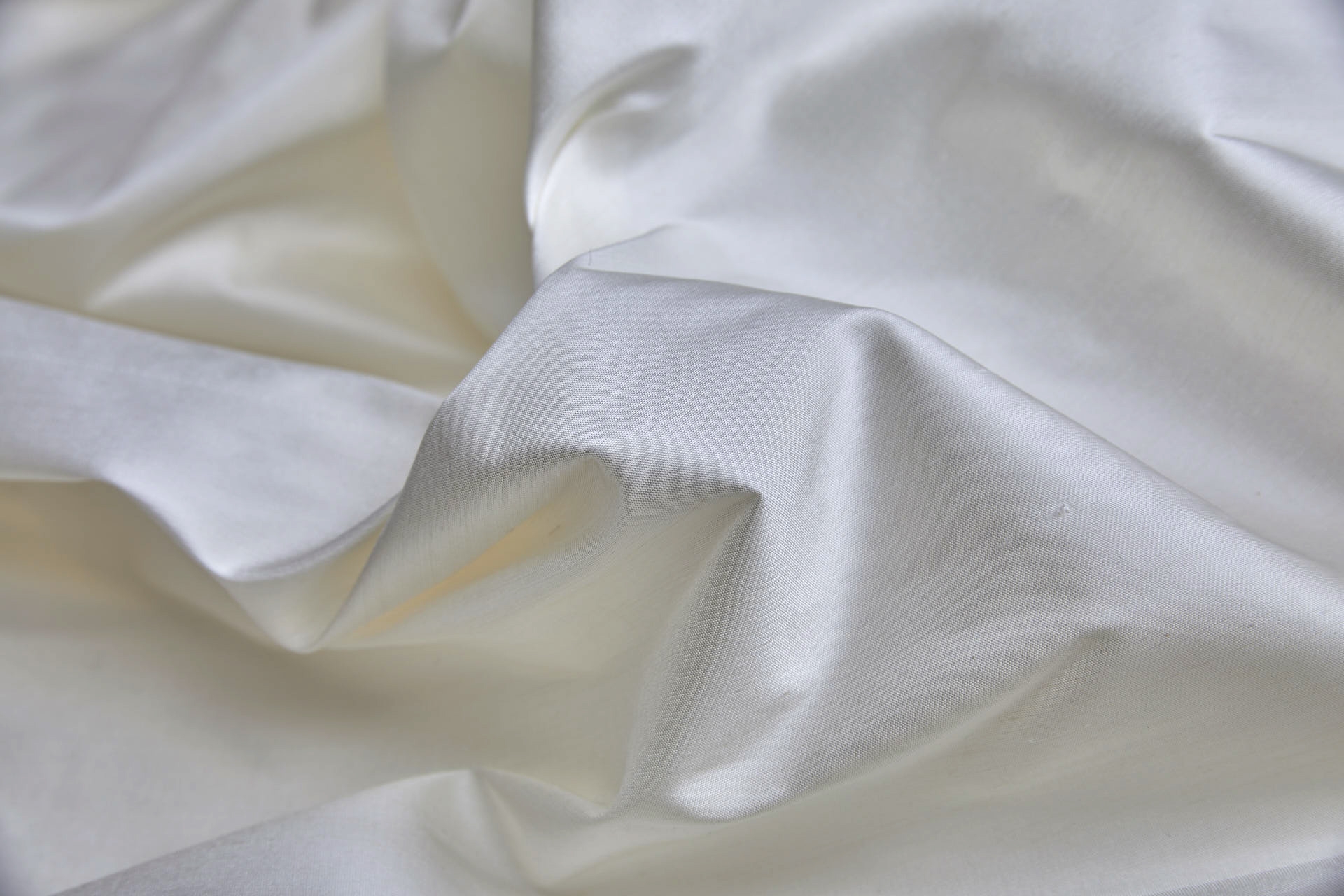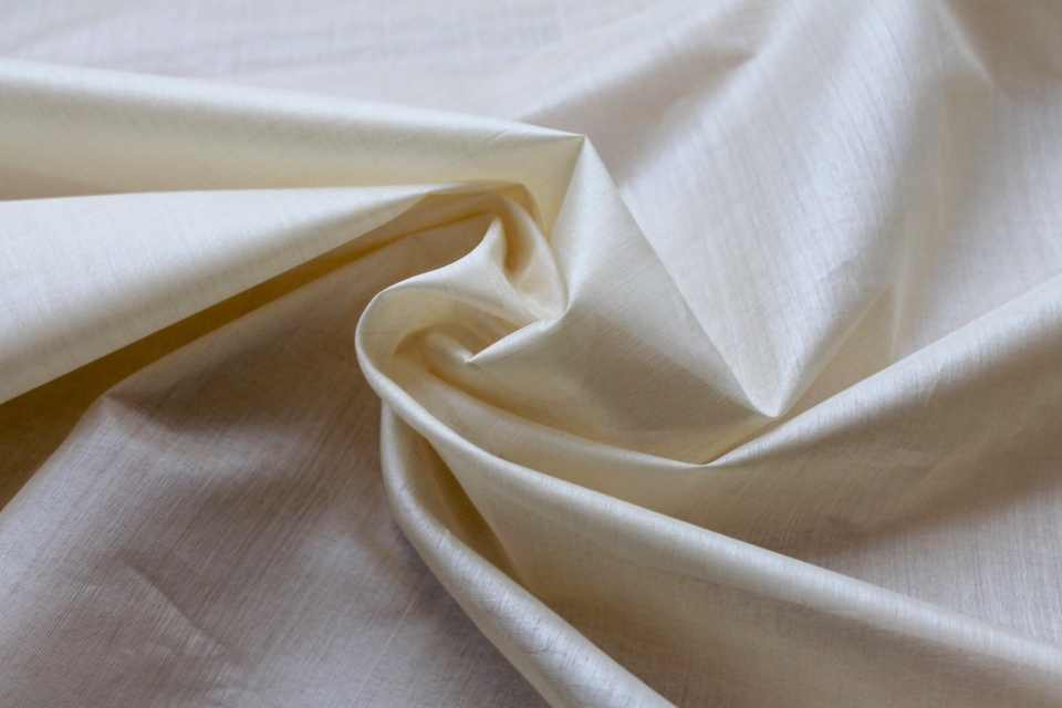 A beautifully structured cloth, woven with a Chinese yarn to give a smoother finish when compared to traditional Indian dupions. This one is ivory, 135-140cm wide. 100% silk.