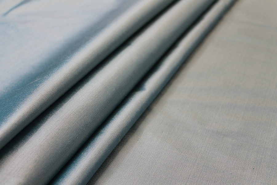 A beautifully structured cloth, woven with a Chinese yarn to give a smoother finish when compared to traditional Indian dupions. Teal shot cream is not one of our regular colours and is not featured on our colour card! 100% silk.