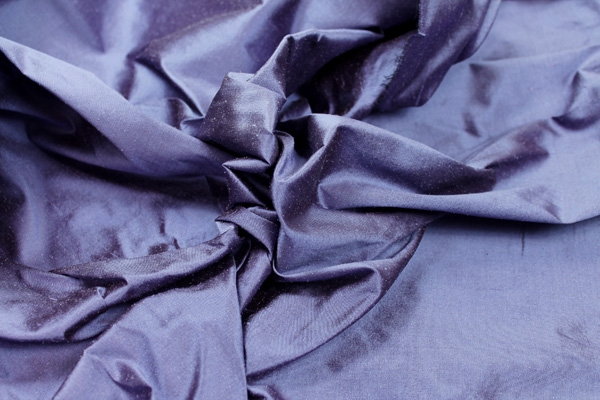 A beautifully structured cloth, woven with a Chinese yarn to give a smoother finish when compared to traditional Indian dupions. Violet shot with black gives an opulent deep violet, colour B29 on our colour card, 100% silk.