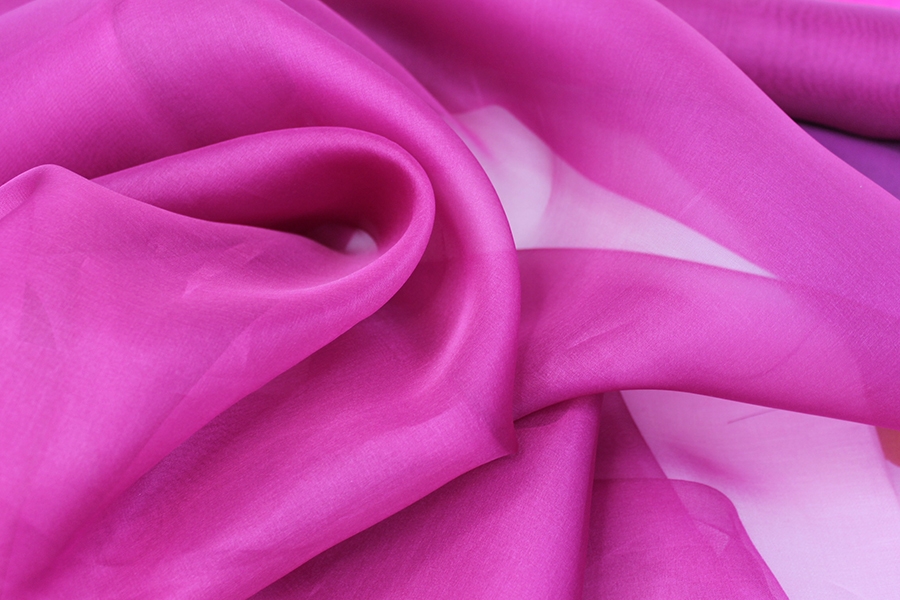 A sheer, structured organza in magenta. 100% silk, 140cm wide.