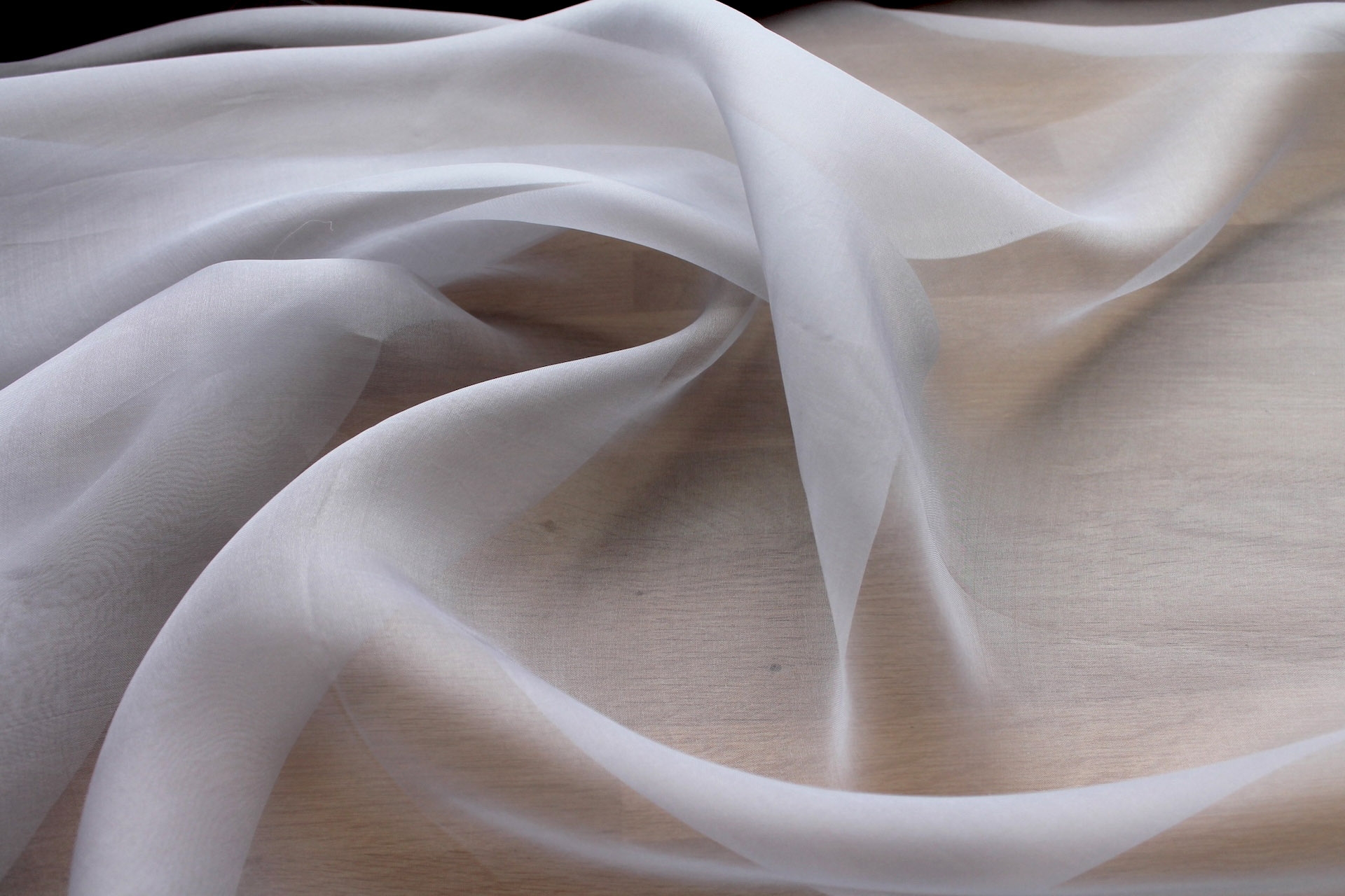 A sheer, structured organza in pale grey. This is a plain colour organza made from the same grey yarns warp and weft. 100% silk.