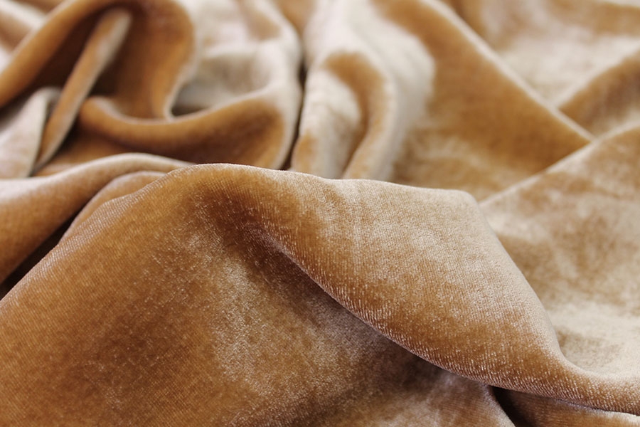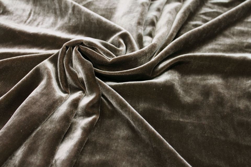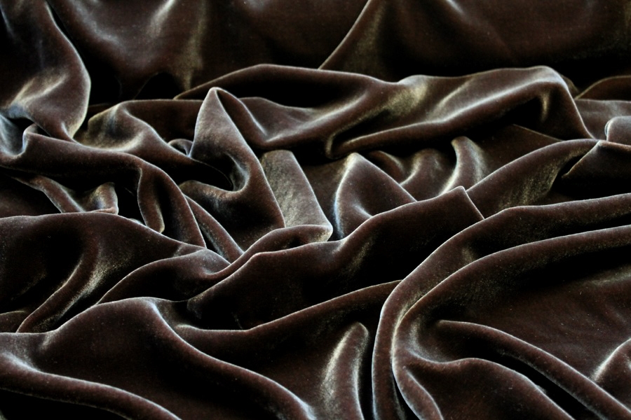 A luxurious, soft, drapey silk velvet composed of a silk chiffon base and a viscose pile, in a rich coffee brown colour.