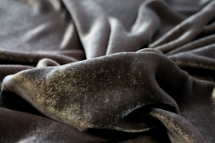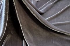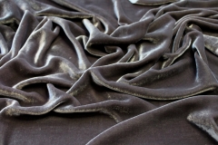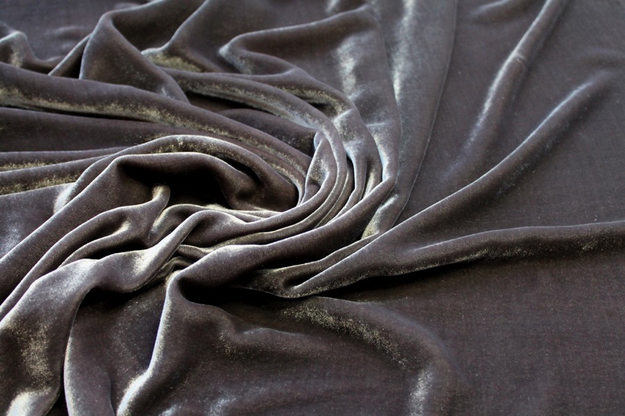A luxurious, soft, drapey silk velvet composed of a silk chiffon base and a viscose pile in a dark slate grey colour. This velvet can also be used for devoré. 82% viscose 18% silk.