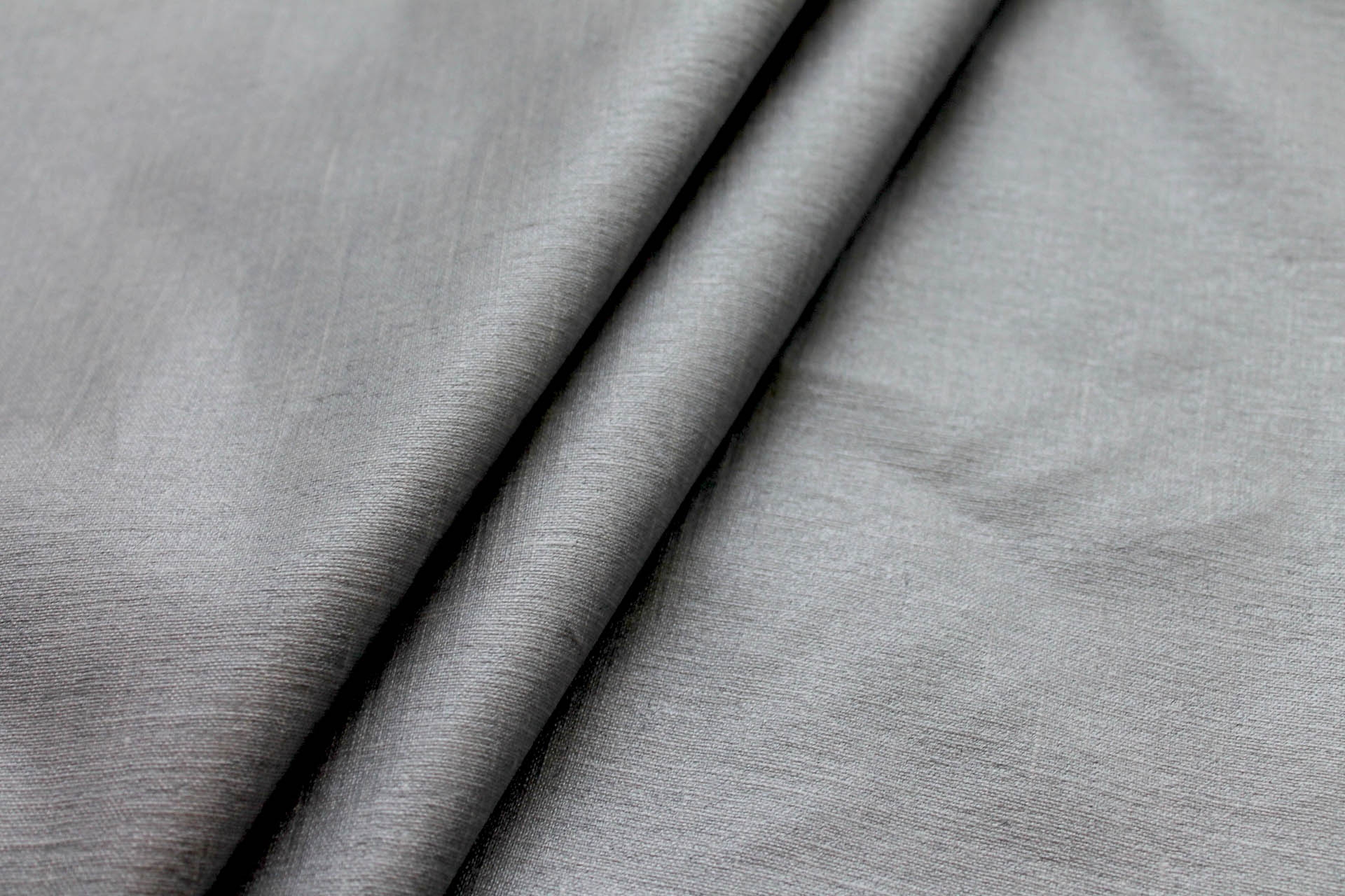100% Linen in ivory, coated in silver grey with a slight metallic sheen. 140cm wide.