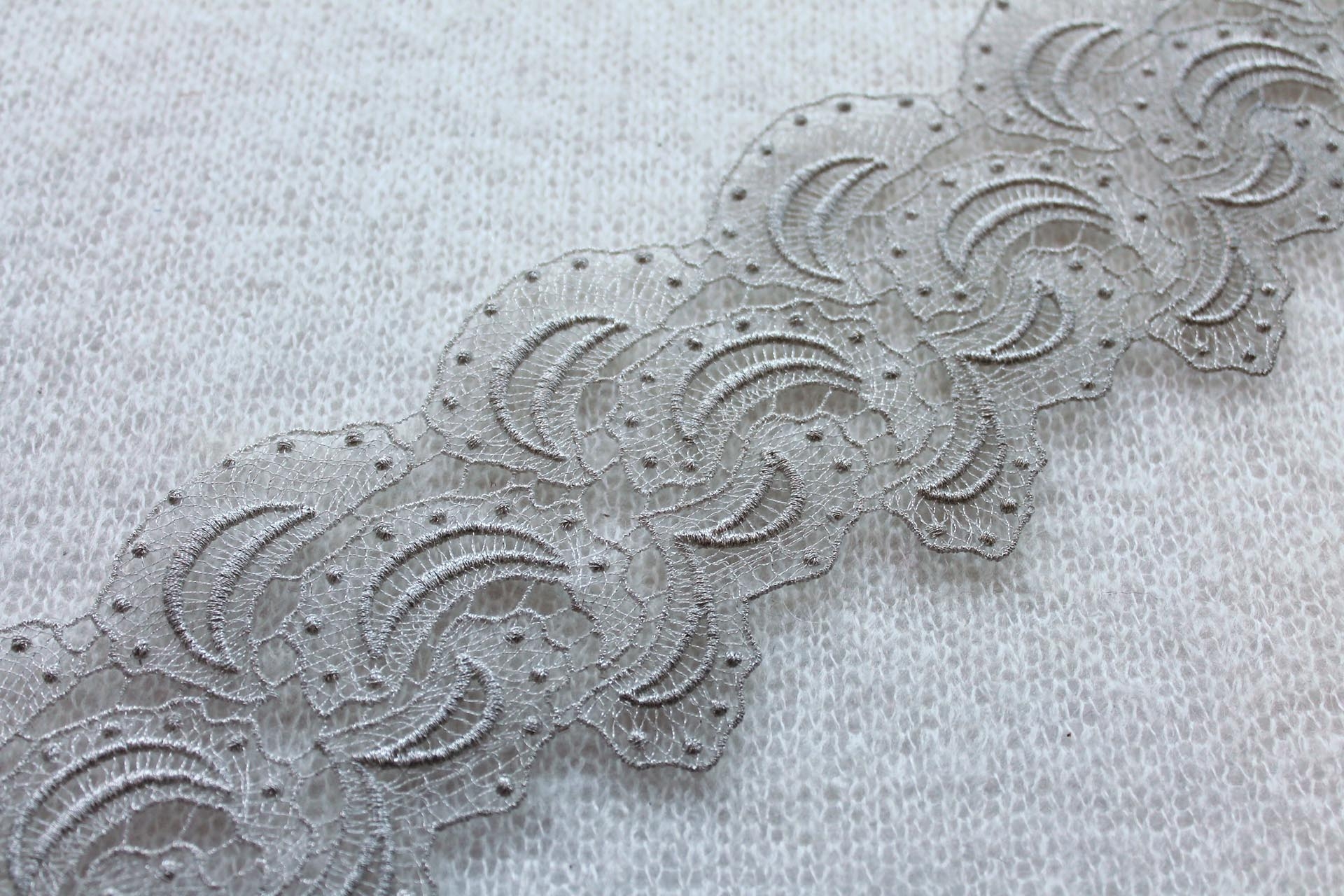 Silver Ivory "Paisley Swirl" Guipure Lace Trim