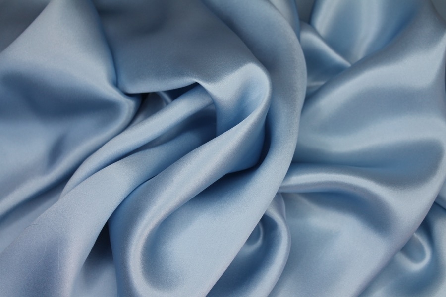 Lightweight silk satin in sky blue. 100% silk, also called silk charmeuse or mulberry silk. Wide at 140cm.